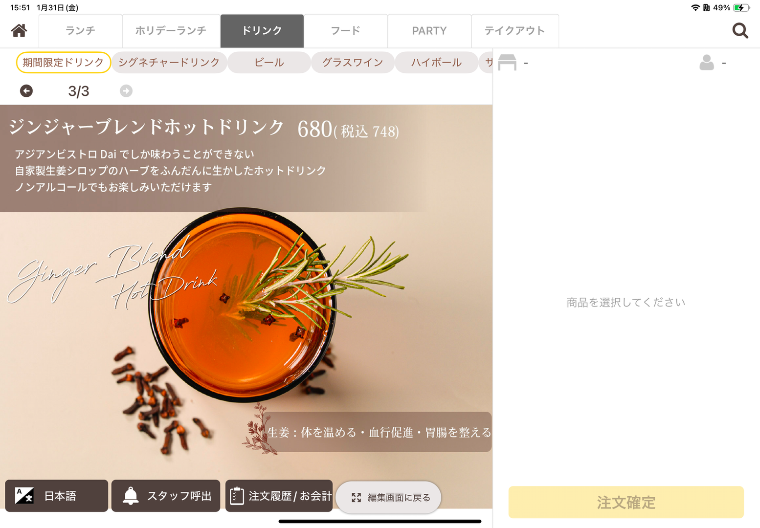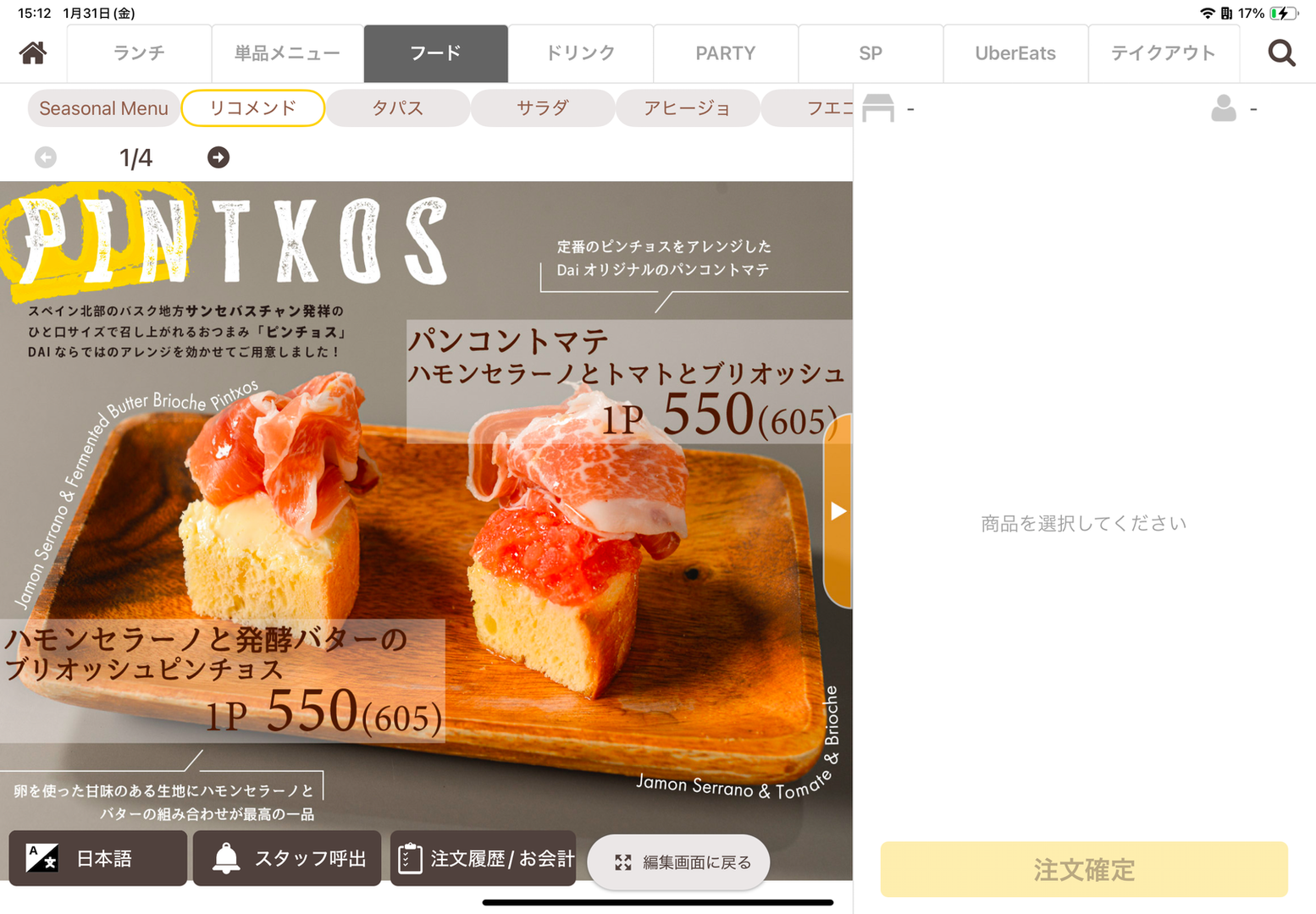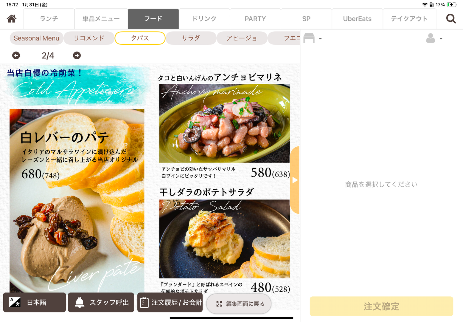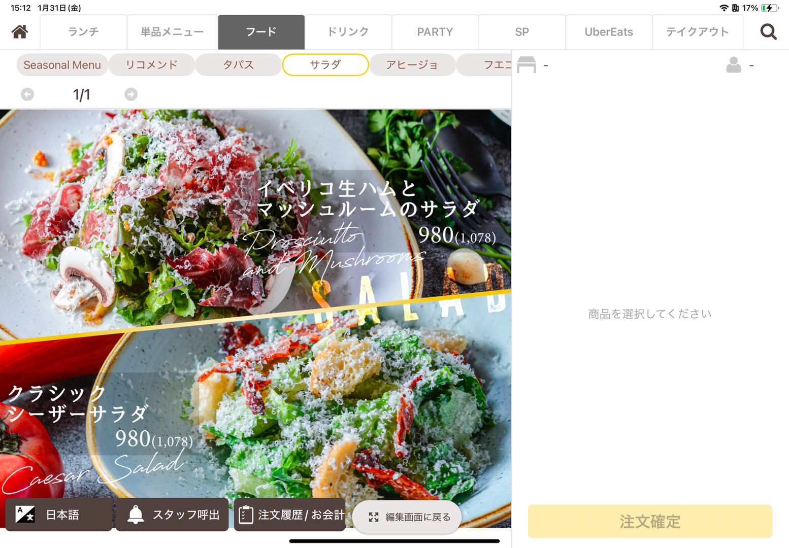 「ポスタス」のスマートフォン専用注文画面「セルフオーダー」内で使用されている動画撮影・編集